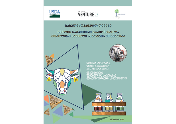 - სახელმძღვანელო თემაზე "წველის საუკეთესო პრაქტიკები და მობილური საწველი აპარატის მოხმარება" (სახელმძღვანელო შექმნილია იმ პირებისთვის, რომლებიც გეგმავენ ხელით წველიდან გადავიდნენ მანქანურ წველაზე და დაინტერესებული არიან ნაკლები დანახარჯებით აწარმოონ მეტად უვნებელი და ხარისხიანი რძე)