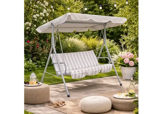 სამადგილიანი ბაღის საქანელა წარმოადგენს კომფორტულ და პრაქტიკულ გადაწყვეტას ეზოს, ბაღის, აივნისა თუ ტერასის მოსაწყობად. მტკიცე მეტალის კონსტრუქცია და პოლიესტერის საფარი უზრუნველყოფს სტაბილურობას, ამინდის პირობებისადმი გამძლეობასა და ხანგრძლივ გამოყენებას, ხოლო კომპაქტური ზომა საშუალებას იძლევა მარტივად განთავსდეს სხვადასხვა გარე სივრცეში. მარტივი აწყობა და დაშლა გამოყენებას კიდევ უფრო მოსახერხებელს ხდის.