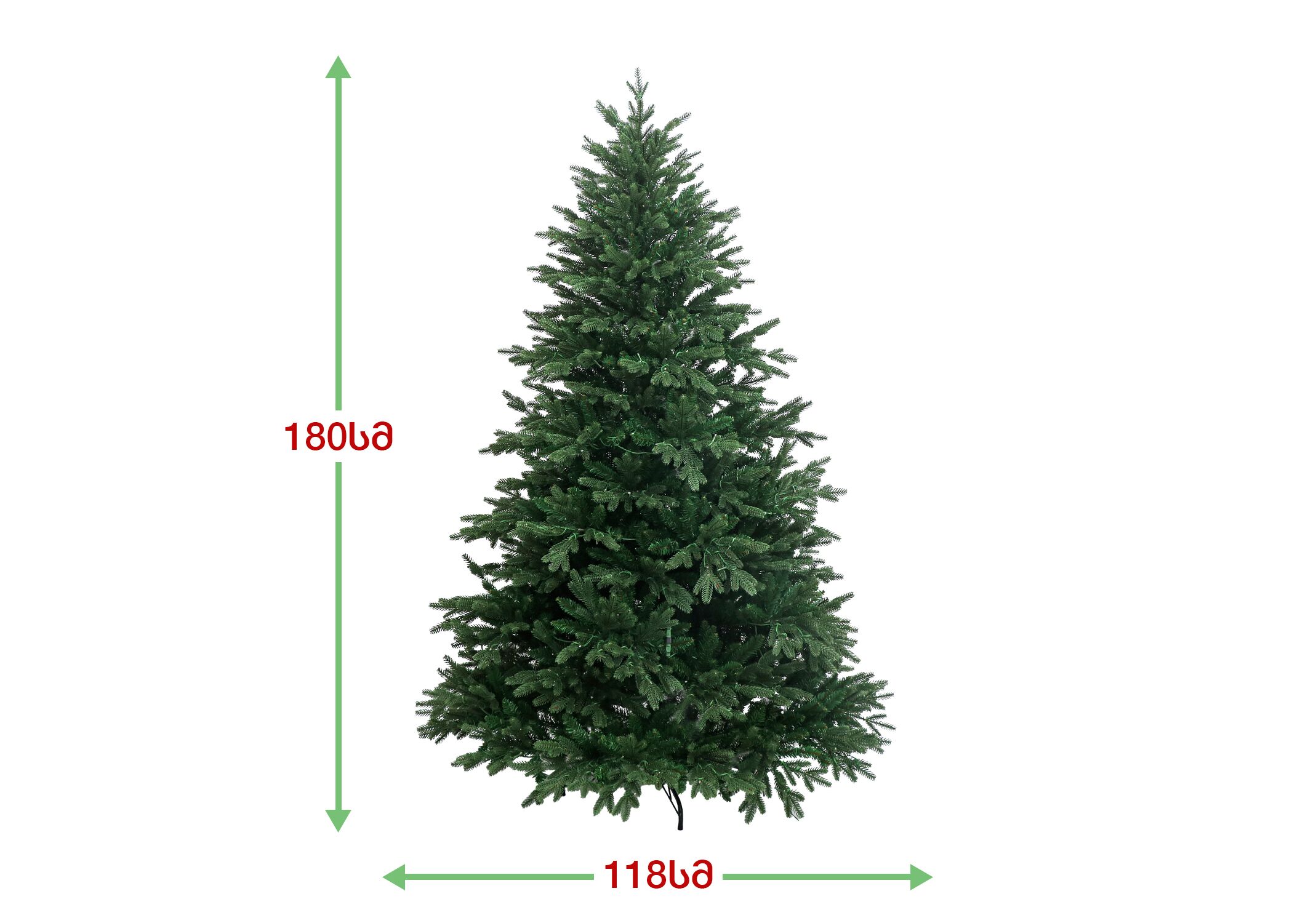 • ბუნებრივის მსგავსი მწვანე ნაძვის ხე, დამზადებული 100% სილიკონის წიწვებით.
