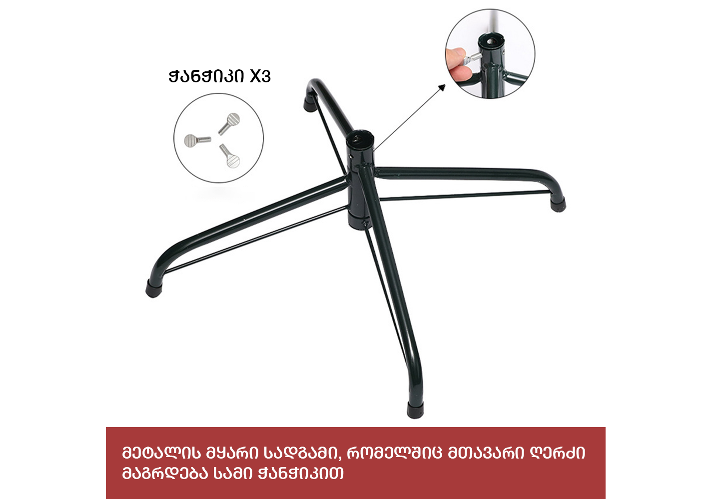 • მეტალის მყარი სადგამით და მთავარი ღერძით.