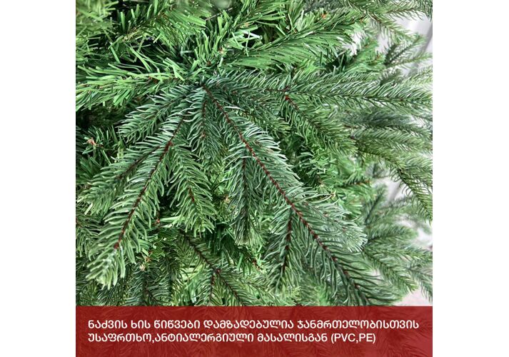 • დრეკადი მეტალის ტოტებით და ჯანმრთელობისთვის უსაფრთხო მასალისგან დამზადებული შერეული ორი სახეობის სილიკონის და PVC წიწვით