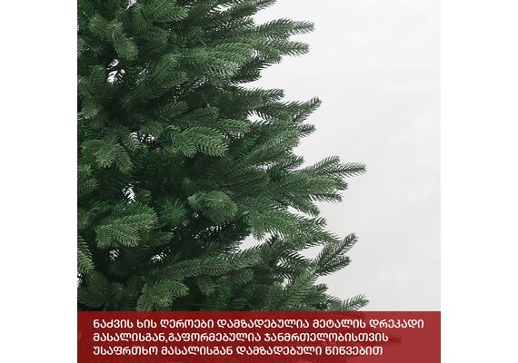 • გამძლე დრეკადი მეტალის ტოტებით და ჯანმრთელობისთვის უსაფრთხო მასალისგან დამზადებული წიწვებით.