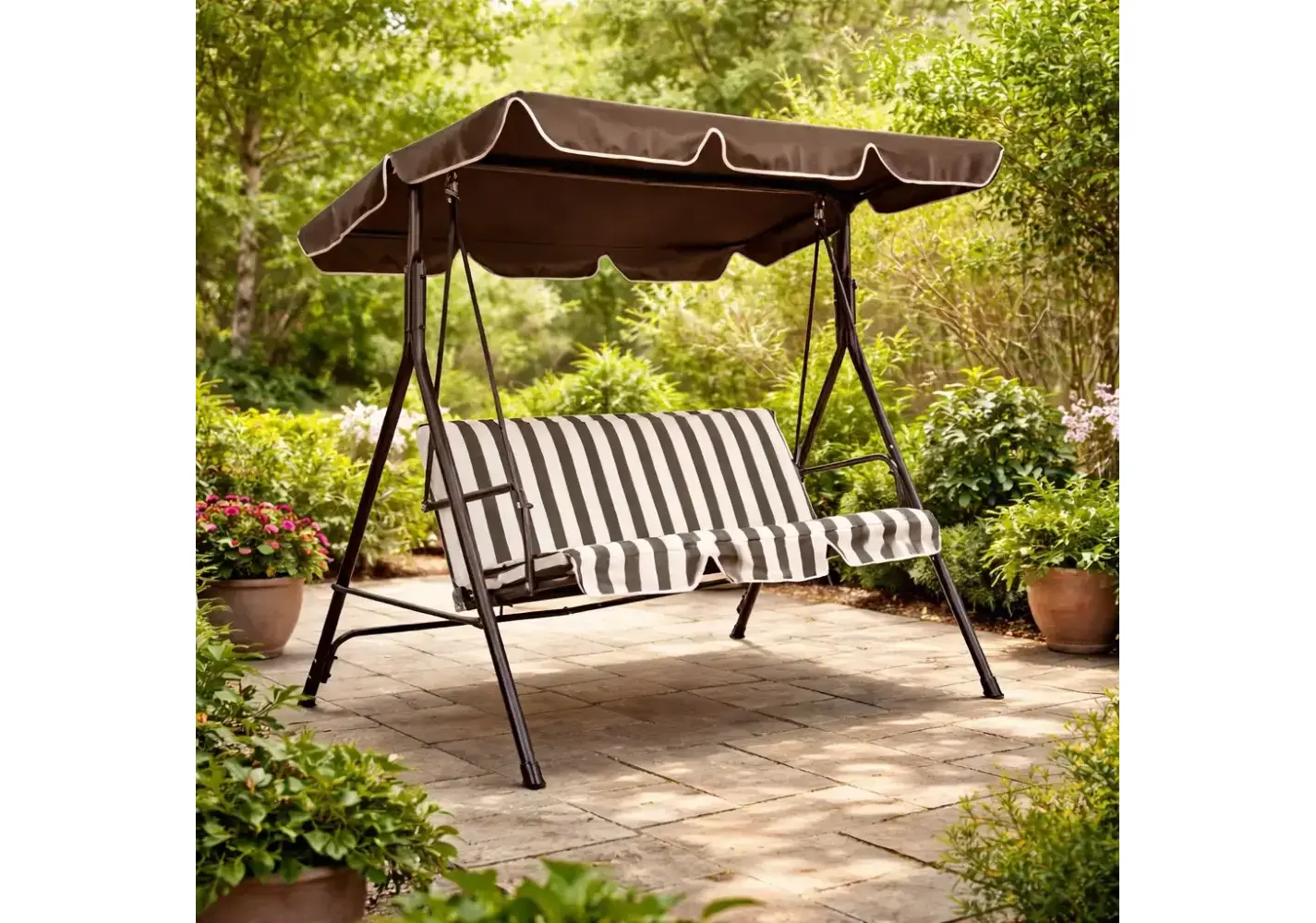 საქანელა ბაღის 3 ადგილიანი 170x110x152 სმ თეთრი/ყავისფერი