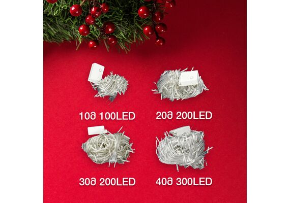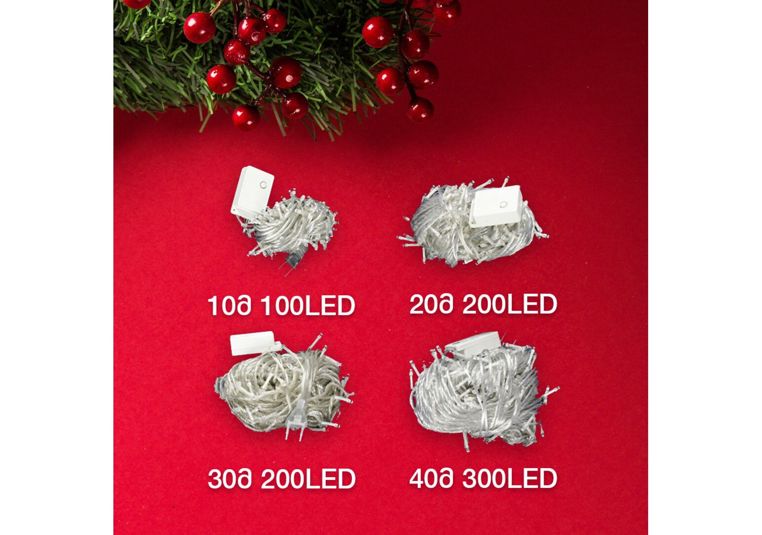 უსაფრთხო და საიმედო საახალწლო განათება განკუთვნილია ნაძვის ხის, კედლების, ფანჯრების და ნებისმიერი გარემოს გასანათებლად. განათება მოიხმარს დაბალ ენერგიას, ამიტომაც შეგიძლიათ ეკონომია არ გააკეთოთ მასზე და საახალწლო პერიოდში შეუზღუდავად აიმაღლოთ განწყობა. გამოსაყენებლად ძალიან მარტივი და პრაქტიკულია, მხოლოდ ერთი ღილაკი აქვს, რომლის საშუალებითაც შეცვლით ნათების რეჟიმს. განათების კაბელი წყალგამძლეა, მაგრამ მაკონტროლებელი არა. ამიტომ გარეთ გამოყენებამდე შეფუთეთ მაკონტროლებელი აუცილებლად.