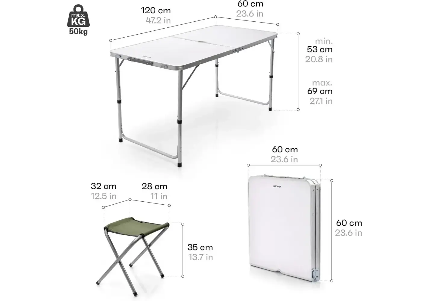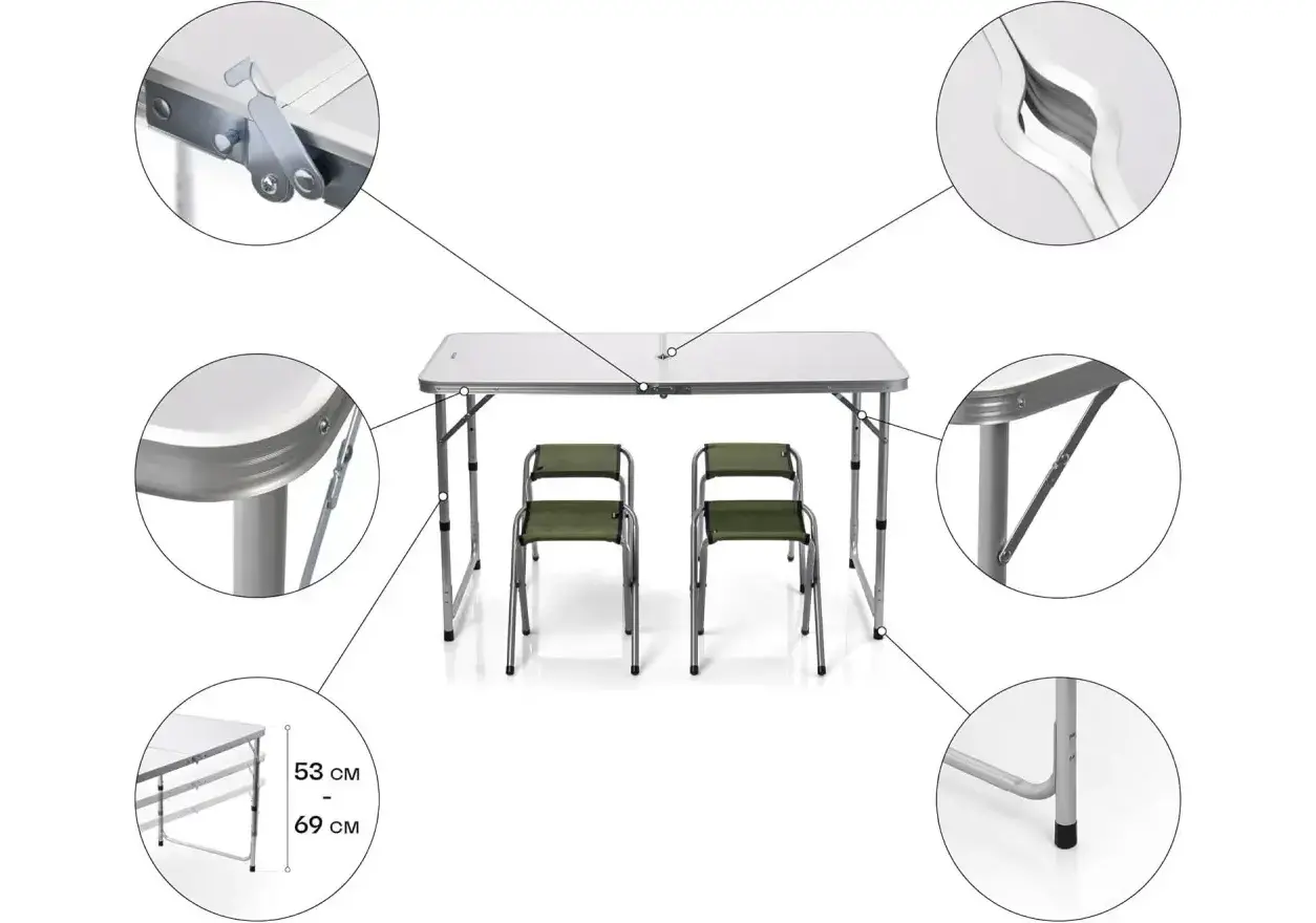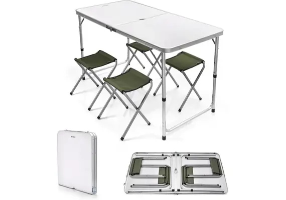 მრავალფუნქციური და კომპაქტური ბაღის ავეჯის კომპლექტი დასაკეცი კონტრუქცით იდეალურია ღია სივრცეებისთვის – პიკნიკისთვის, კემპინგისთვის ან აგარაკზე დასვენებისთვის. მსუბუქი, მაგრამ გამძლე ალუმინის კონსტრუქცია და ლამინირებული ზედაპირი უზრუნველყოფს სტაბილურობასა და გამძლეობას. კომპლექტი მარტივად იკეცება, რაც მას განსაკუთრებით პრაქტიკულს ხდის გადაადგილებისა და შენახვისას.